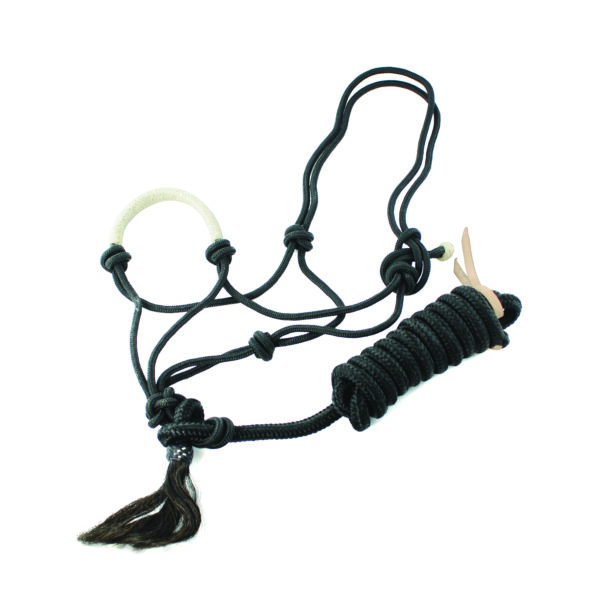 Cavezza in nylon annodata con riporti in rawhide