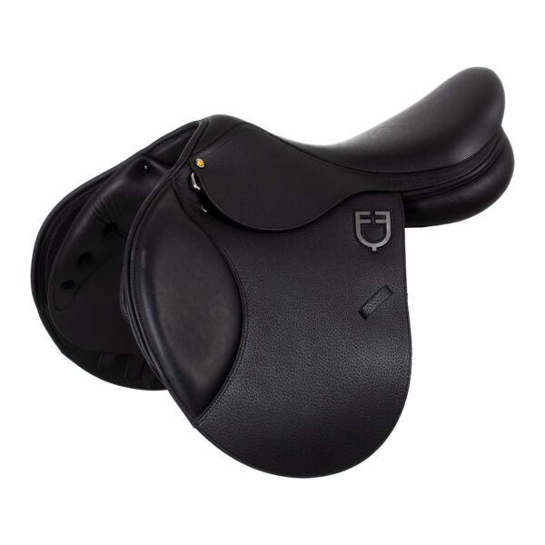 Sella da salto in morbido cuoio di alta qualità realizzata a partire dall’idea di una sella snella semplice ed elegante.