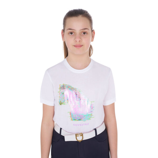 Il punto focale di questo capo è la stampa raffigurante la sagoma di un cavallo realizzata in vari colori fluo, ulteriormente arricchita da logo e scritta Equestro. Il suo design di alta qualità la rende una scelta versatile per qualsiasi occasione.