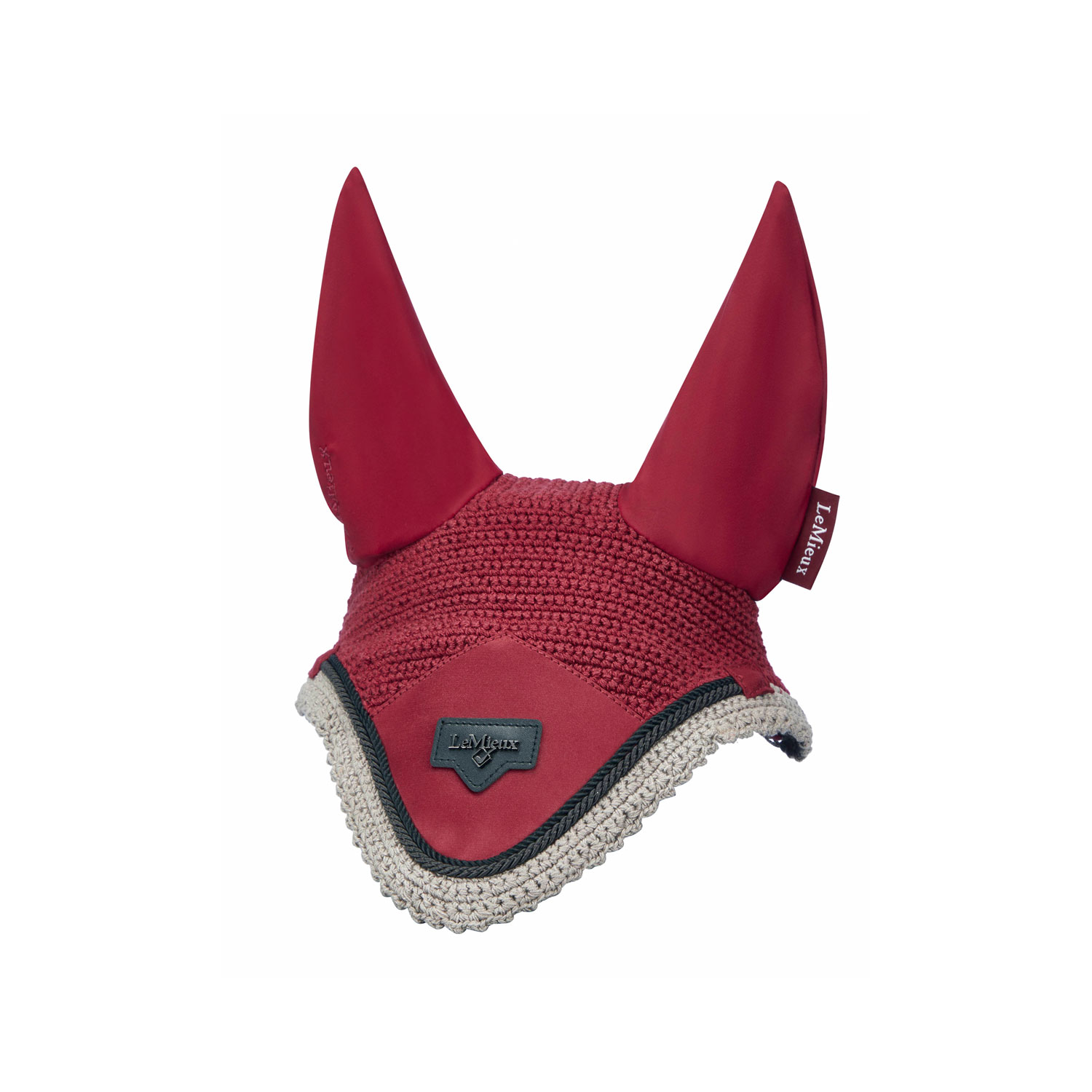 Il velo facciale in 100% cotone è realizzato in uncinetto elasticizzato a quattro vie fatto a mano per una vestibilità sicura sotto la briglia, ed è bordato con una lussuosa treccia a doppia torsione. Un lussuoso ed elegante pezzo frontale in raso presenta il logo LeMieux in rilievo con motivo in metallo su pelle. Il velo facciale è completato da un morbido e confortevole tessuto per le orecchie in elastan, progettato per proteggere le orecchie del tuo cavallo da mosche, polvere e distrazioni.